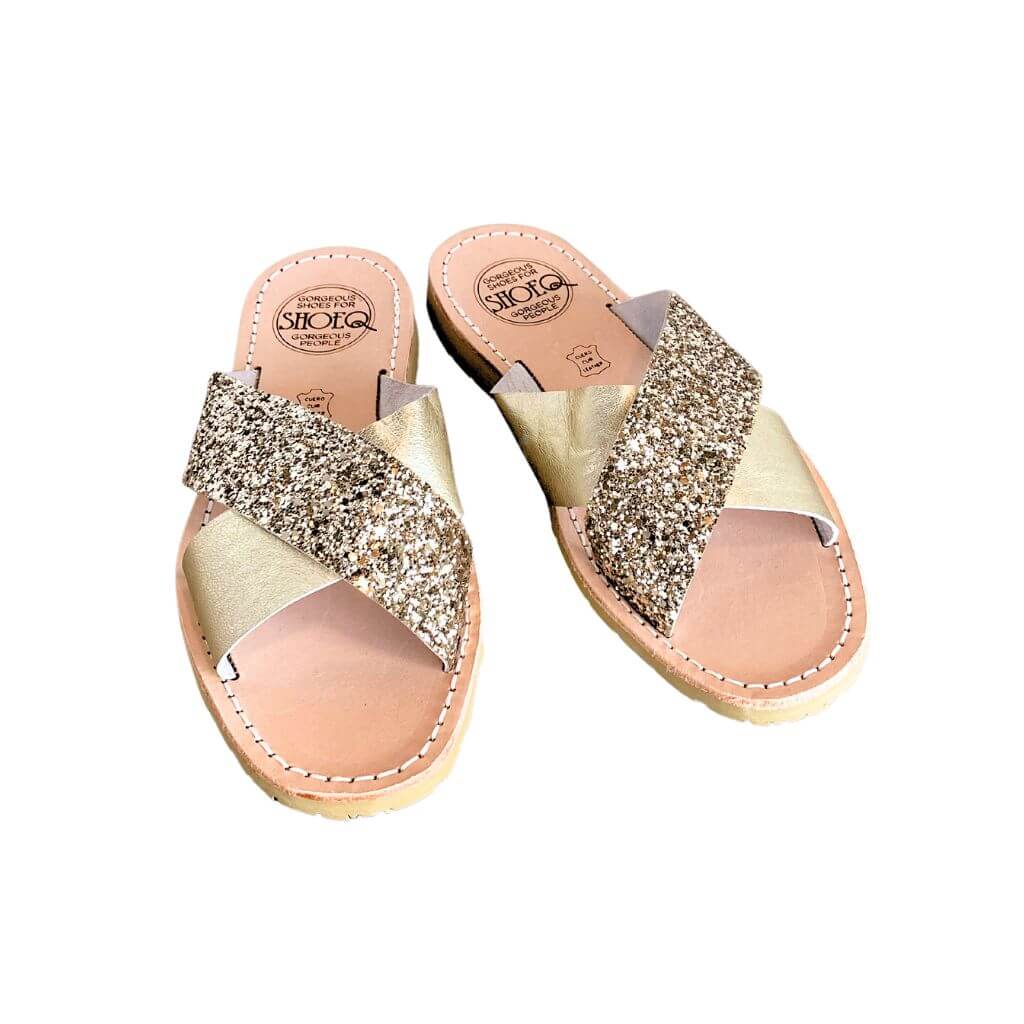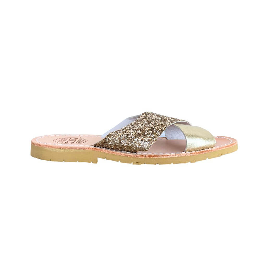 Sandalias Crossover con purpurina color champán