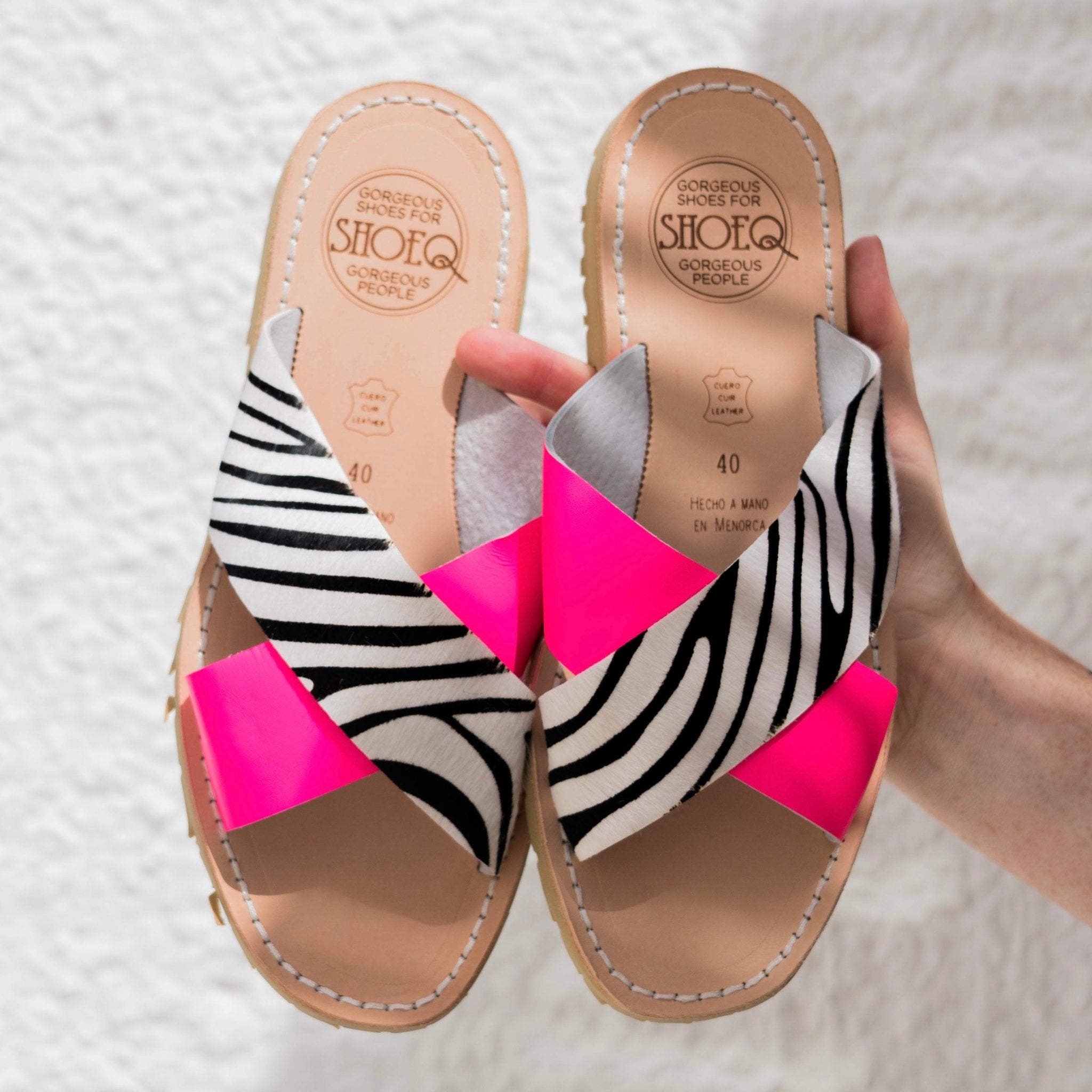 - Sandalias de piel hechas a mano con dos tiras en contraste