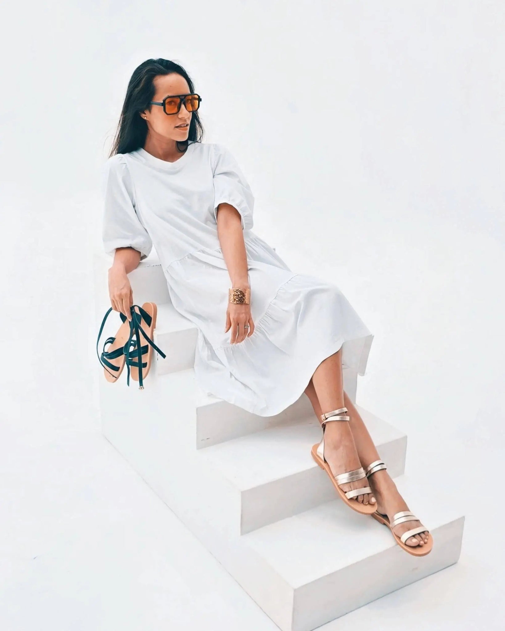 Estas versátiles sandalias de piel griega cuentan con tres elegantes tiras de piel y se ajustan con gracia a los tobillos con un diseño de doble tira para mayor comodidad durante todo el día. La suela de goma, completamente plana y ligera, se siente tan ligera como si estuvieras descalzo, mientras que la plantilla de piel con tratamiento natural se adapta a tus pies con cada uso.