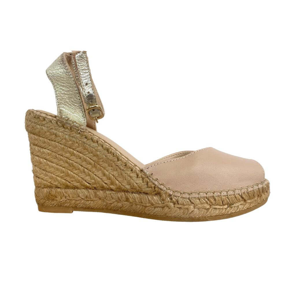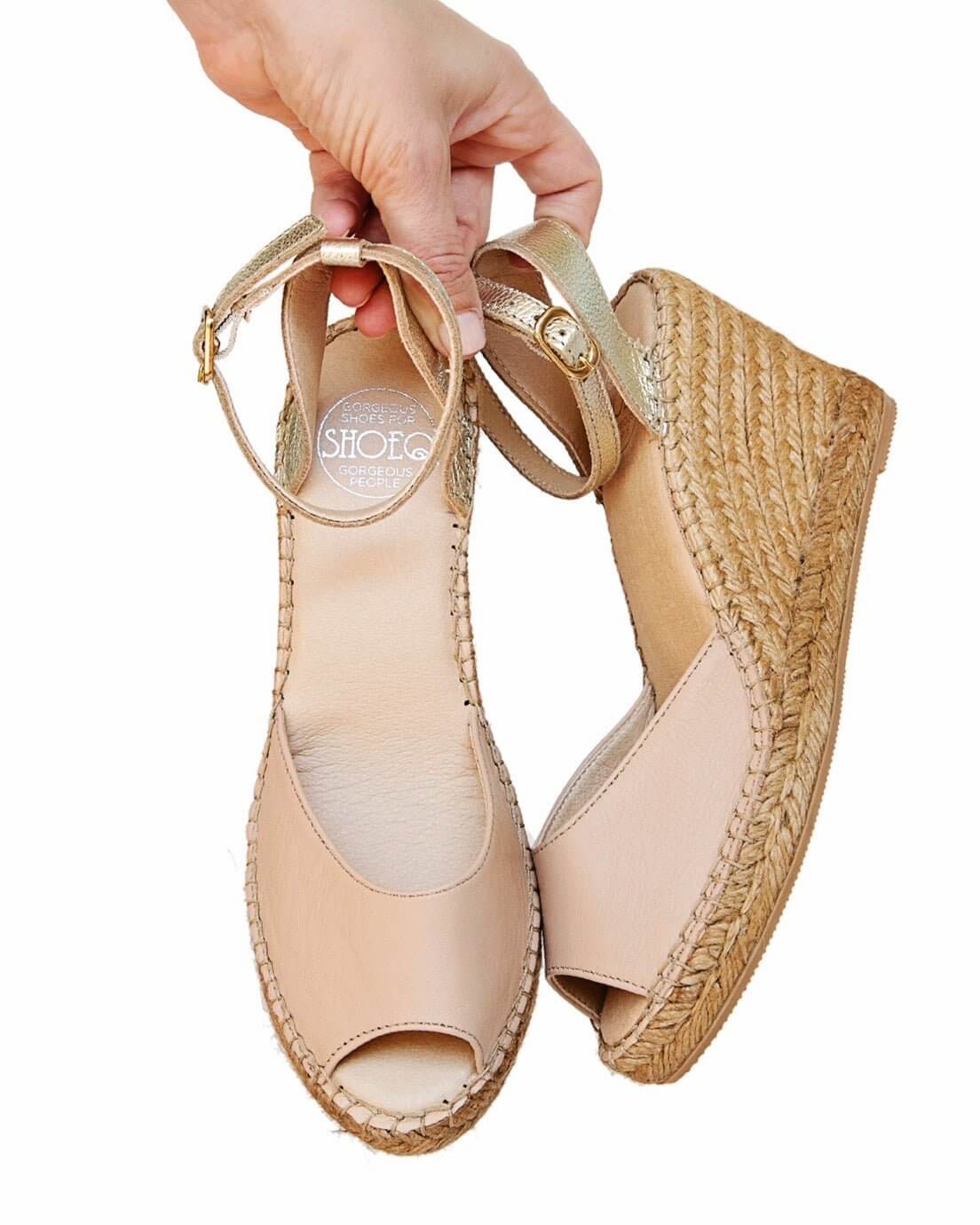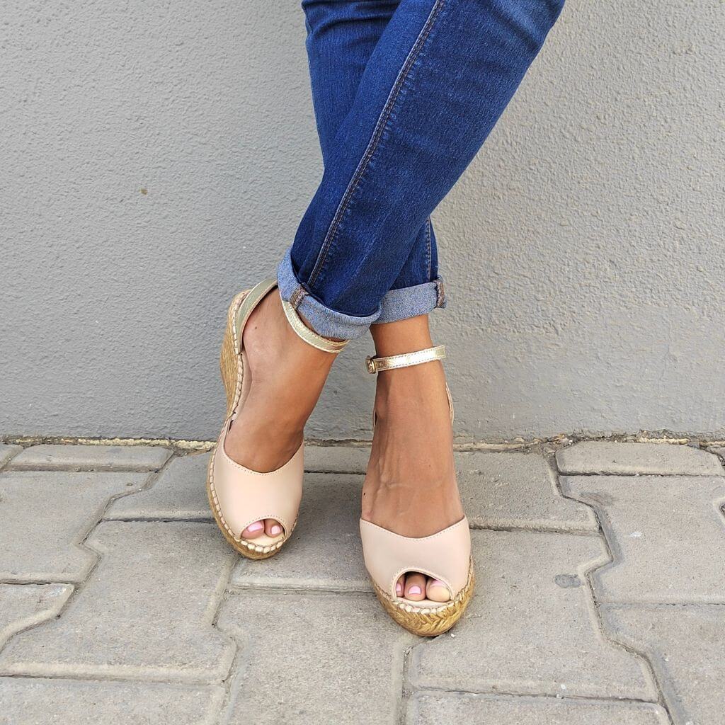Cuña Peep Toe en color champán arena