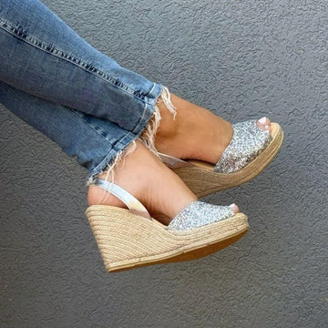 Alpargatas de cuña Lucia con purpurina color champán